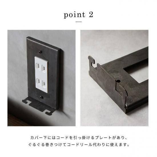 アイアンの質感がお部屋の雰囲気を演出してくれるだけでなく、コンセント周りに散乱するコード類を整理することもできるカバーです。